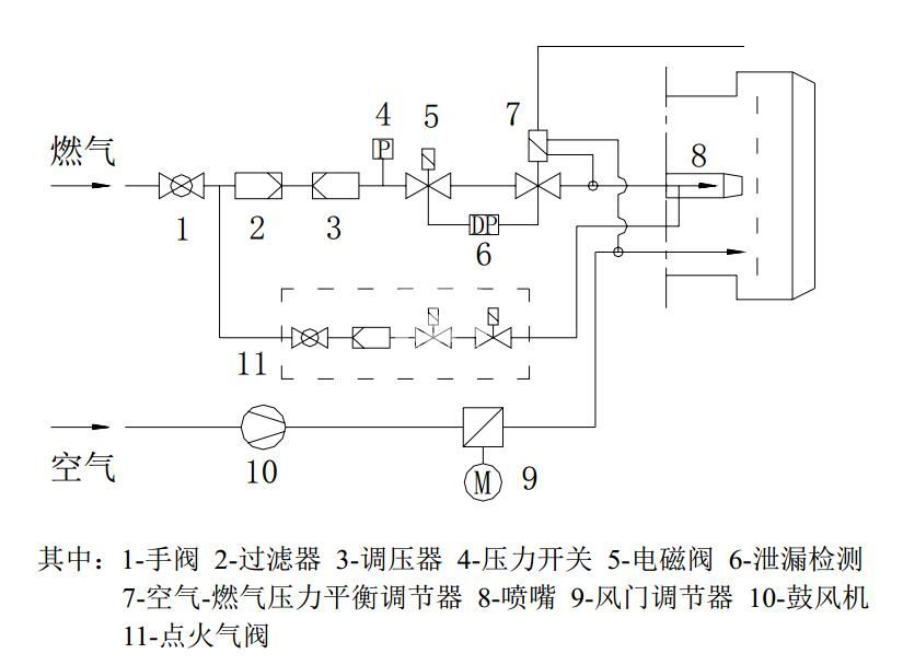 以比例式燃?xì)馊紵鳛槔涔ぷ鬟^程有四個(gè)階段:準(zhǔn)備階段、預(yù)吹掃階段、點(diǎn)火階段和正常燃燒階段。