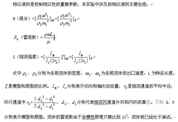 模擬試驗要與燃燒器出口湍流場中運動學、動力學相似,必須滿足相應的相似條件:幾何相似和必要的相似準則。幾何相似主要是燃燒器以及系統在原型和模型中幾何形狀要求相似。本實驗模型和原型的比例是 =1:10。